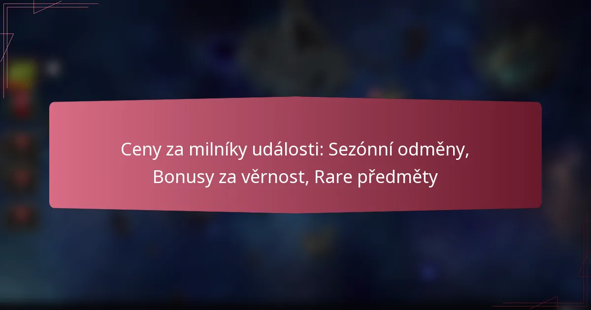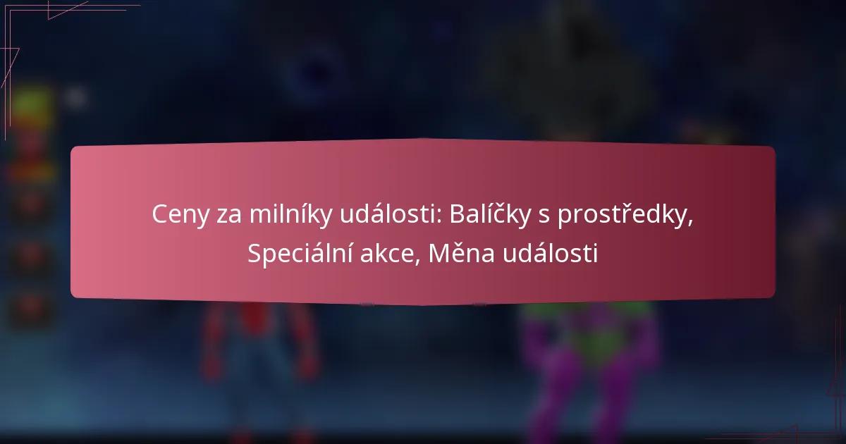 Ceny za milníky události jsou odměny udělované účastníkům, když dosáhnou konkrétních úspěchů během události. Tyto ceny slouží k motivaci a uznání jednotlivců za jejich úsilí a úspěchy během události.
